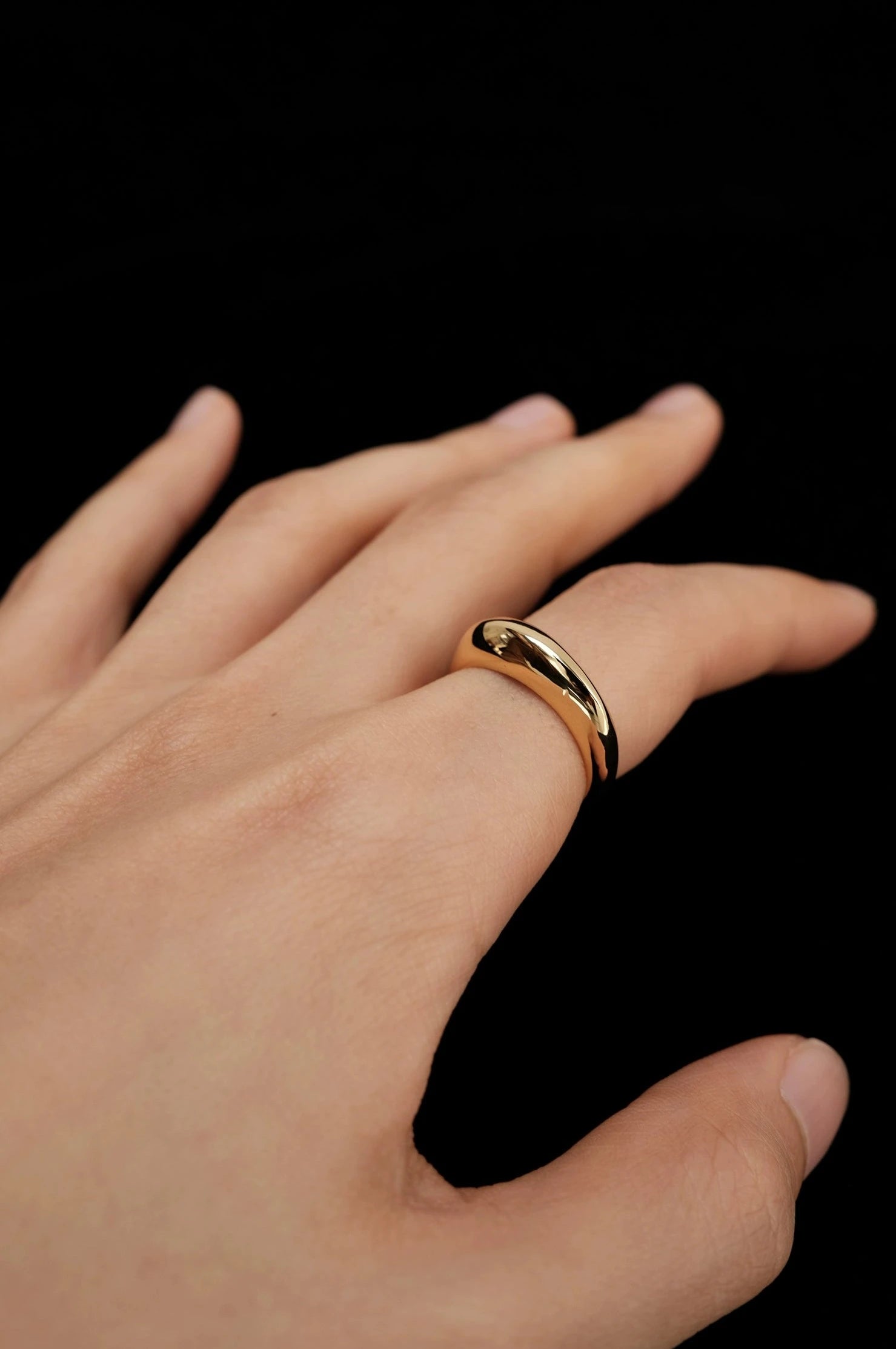 Take a spin with the Tilda Modern Mobius Ring in Gold! This abstract bubble ring adds a touch of sleekness to your style. Its medium band width allows for versatile wear whether alone, doubled up, or stacked with other rings. With 18K PVD gold plating, it's also water proof - perfect for a swim.